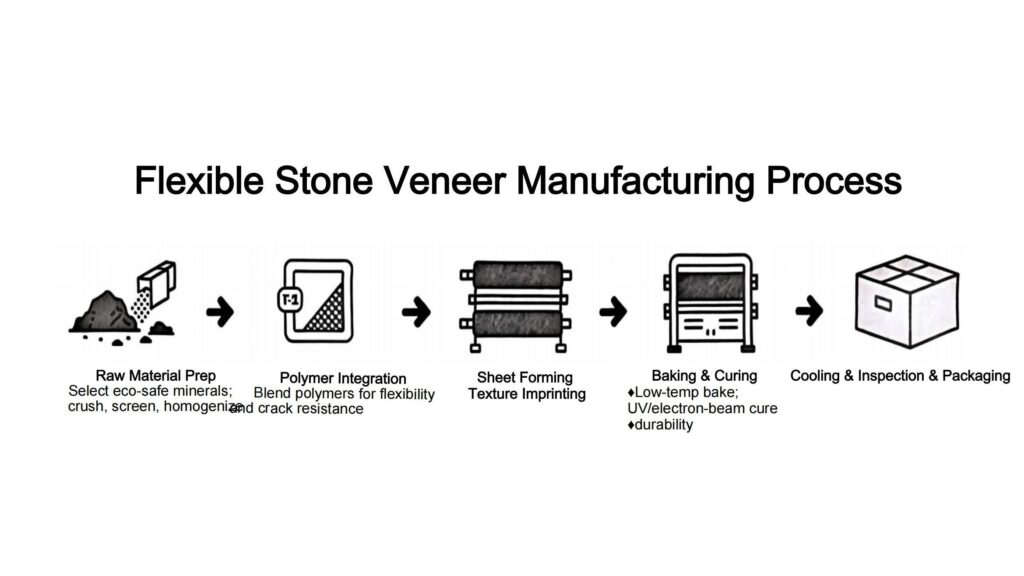 The manufacturing of flexible stone veneer starts with responsibly sourced, mineral-rich clay. These raw materials are finely ground and homogenized to ensure a consistent base texture and natural coloration.