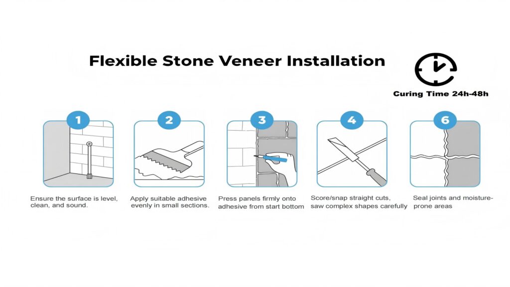 Select ASTM C920-compliant polymer-based flexible adhesives. Apply in manageable 1m² sections using a 4-6mm notched trowel. For exterior or high-humidity applications, we recommend applying a skim coat to the veneer back. Avoid solvent-based formulations which compromise long-term flexibility based on our accelerated aging tests.