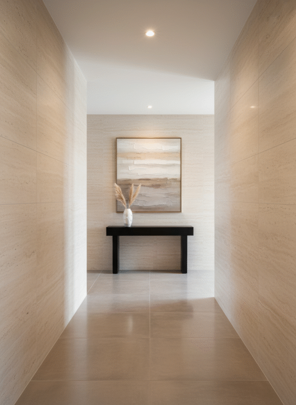 Travertine Classic Series is a refined wall treatment inspired by heritage Italian travertine, featuring warm beige tones, delicate linear veining, and natural pinholes. Subtle variation adds depth without visual noise. Finished in a soft matte, it complements modern and traditional interiors, elevating residential and commercial spaces with timeless serenity effortlessly.