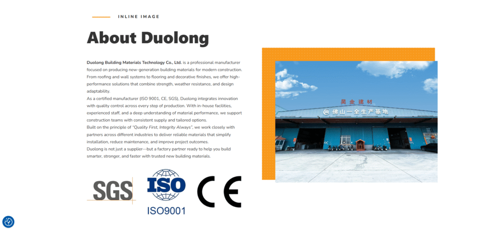 Duolongtrade is a China-based building materials manufacturer specializing in PU faux stone panels designed for modern architectural and decorative applications. Engineered to replicate the authentic texture of natural stone, these panels provide a lightweight, durable, and cost-effective alternative to traditional materials such as marble, granite, and concrete. Made from high-density polyurethane, Duolongtrade’s PU faux stone panels offer exceptional performance, including waterproofing, UV resistance, thermal insulation, fire retardancy, and corrosion resistance. Their lightweight structure significantly reduces structural load and transportation costs, making them ideal for both interior and exterior wall cladding. Available in a wide range of textures, colors, and finishes—from rugged stacked stone to classic limestone styles—these panels are widely used in residential facades, commercial buildings, retail environments, hospitality projects, and renovation applications. Supported by advanced manufacturing technology and strict quality control systems, Duolongtrade ensures consistent product quality and compliance with international standards such as SGS, ISO, and CE.